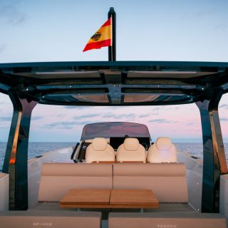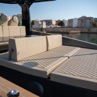 Este modelo incorpora una capota deportiva con sistema led a la que se puede instalar un bimini eléctrico, sumando calidad y bienestar en los días soleados.